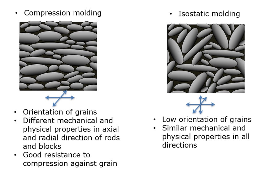 通常認為浸漬過程會改變石墨的內(nèi)部導熱系數(shù)。 這是錯誤的,因為在浸漬過程中樹脂取代了空氣,和樹脂比起來,空氣才是最差的導體。