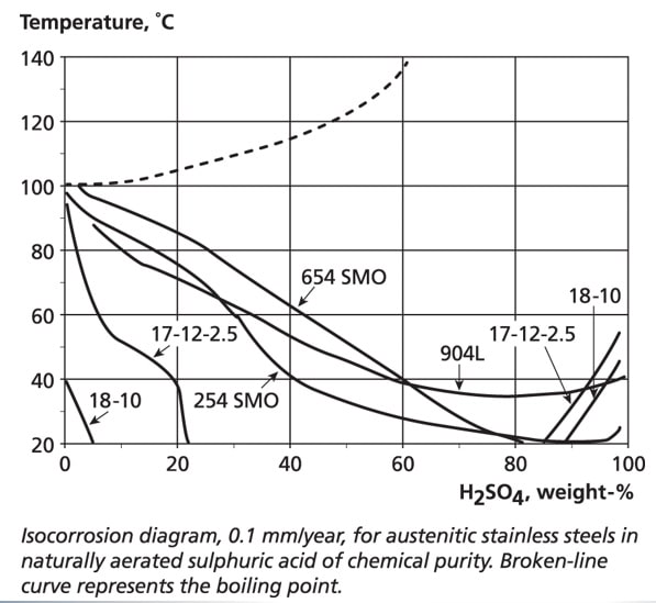 腐蝕曲線圖是工程師選取設(shè)備結(jié)構(gòu)材料的實(shí)用工具。不幸的是,大多數(shù)腐蝕圖給出的是沒有任何離子污染的固定組成的介質(zhì)。金屬材料對(duì)這種污染卻很敏感,如果在投資決定之前不進(jìn)行腐蝕試驗(yàn),將導(dǎo)致嚴(yán)重后果。當(dāng)原料成分復(fù)雜時(shí),這類問他更加凸顯。(例如用磷酸加工磷礦,或用硫酸從生物中生成生物燃料。)